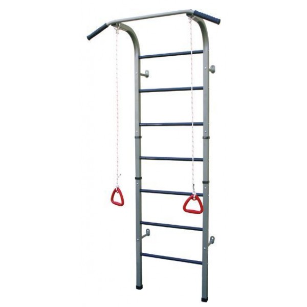 Модель изготовлена из прочных элементов с качественным окрашиванием. Турник жестко зафиксирован. Сборная лестница облегчает транспортировку. Тренажер прикрепляется к стене, на четыре точки.