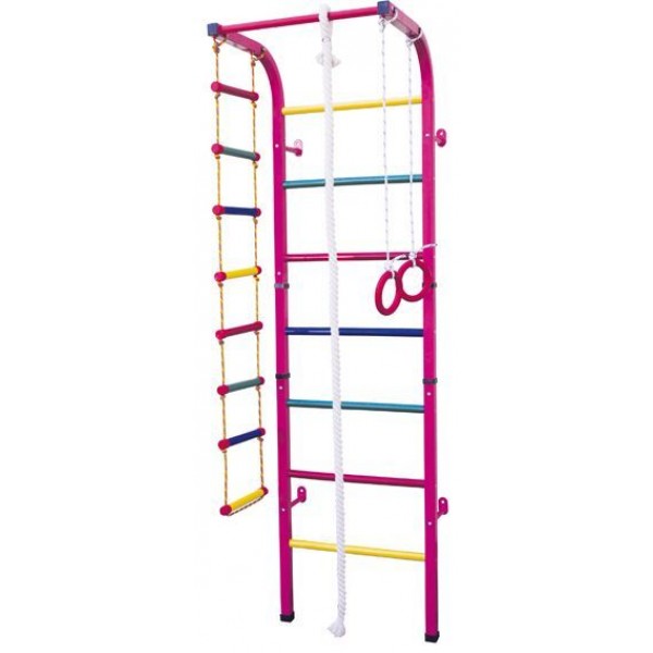 V-Sport АКРОБАТ-2 СТ-053 - спорткомплекс для детской комнаты с яркой окраской элементов, который предлагает турник, канат, а также веревочную лестницу и кольца.