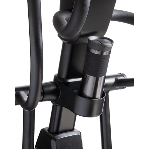 Поручни оснащены датчиками проверки пульса, установлены подставки для крепления бутылки и смартфона.