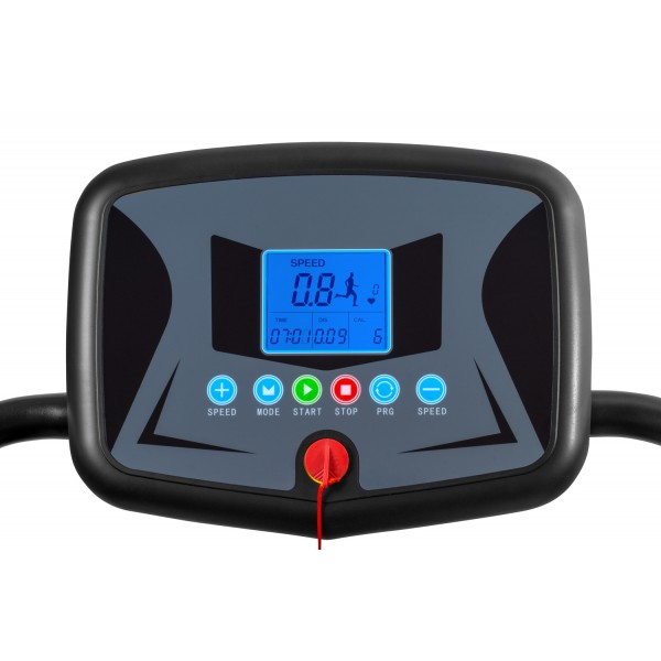 Беговая дорожка оборудована двигателем на 1,5 л. с., который обеспечивает разгон до 10 км/ч. Небольшой размер бегового полотна будет удобен для быстрой ходьбы и занятий в небольшой комнате. Возможность складывания также привлекательна для владельцев маленьких помещений.