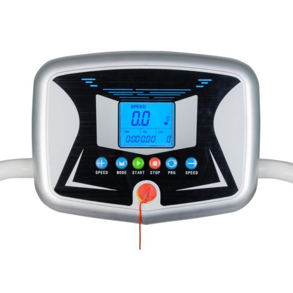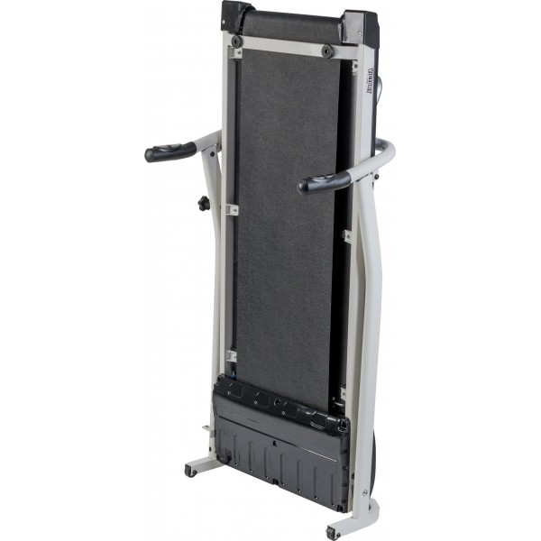 Беговая дорожка оборудована двигателем на 1,5 л. с., который обеспечивает разгон до 10 км/ч. Небольшой размер бегового полотна будет удобен для быстрой ходьбы и занятий в небольшой комнате. Возможность складывания также привлекательна для владельцев маленьких помещений.