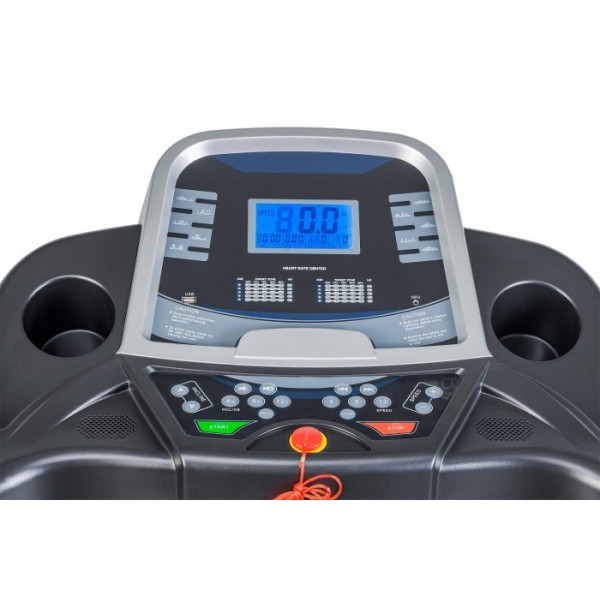 Надежная конструкция позволяет заниматься людям с весом до 130 кг. Мощный двигатель на 3 л. с. обеспечивает скорость движения до 16 км/ч. В модели установлена обновленная система амортизации, а угол наклона регулируется электронно. Выбрать нужную скорость и наклон можно прямо на поручнях, здесь же расположены сенсоры частоты пульса.