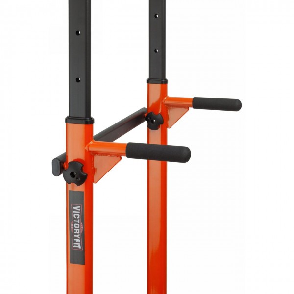 VictoryFit VF-T45 – турник и брусья, совмещенные в одной конструкции. Модель рассчитана на вес спортсмена до 100 кг.