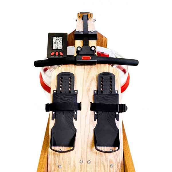 Тренажер привлекает внимание корпусом из массива ясеня, также в конструкции использованы элементы из прочной стали, алюминия и нейлоновый ремень. Предусмотрено 5 уровней гидравлической нагрузки. Спортсмену будет удобно на эргономичном сидении, а надежно зафиксировать ступни помогут ремешки на педалях.