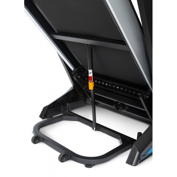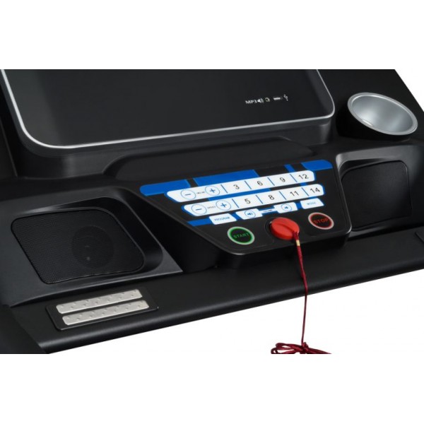 Мощный надежный двигатель на 3 л. с. позволяет спортсмену достичь скорости 15 км/ч. Широкое полотно (50 см) имеет износостойкое многослойное покрытие, а также современную амортизацию. Дорожку можно наклонять от 0 до 15 градусов, дополнительно регулируя нагрузку. Встроенные сенсоры частоты пульса находятся на поручнях, здесь же регулируются скорость и наклон.