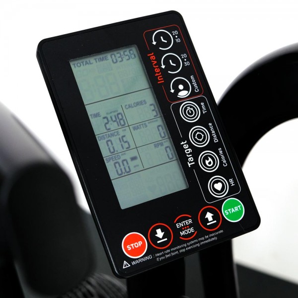 Тренажер поставляется с небольшой информативной консолью, которая может работать с кардиопоясом и отображать частоту пульса (приобретается отдельно). Также предусмотрены: