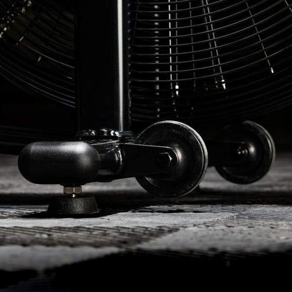 Колесо вентилятора, создающее нагрузку, находится в защитном корпусе. Рукоятки закреплены с использованием шарикоподшипников, что делает движения рук плавными. Сидение можно регулировать по горизонтали и вертикали. Есть ролики для перемещения.