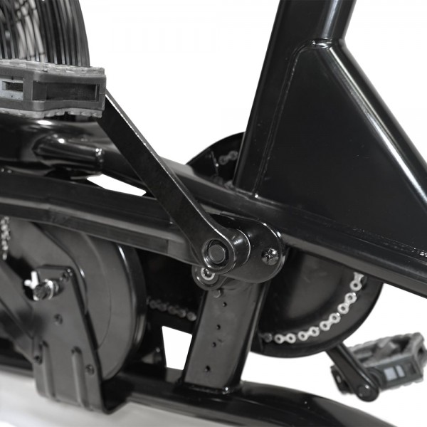 Тренажер позволяет вручную отрегулировать нагрузку, можно задать 8 уровней магнитного и дополнительно 10 вариантов воздушного сопротивления. Установленный цепной привод обеспечивает более долговечное использование (чем у ремня), сохраняя бесшумность и плавность движения.