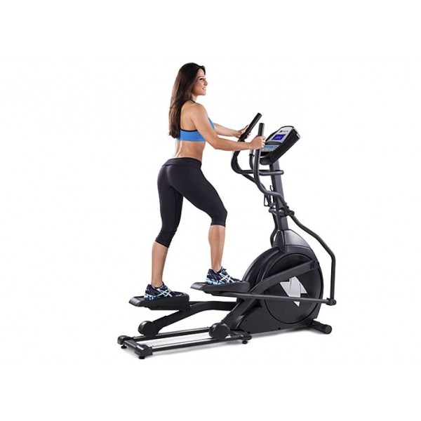 Тренажер выполнен с передним расположением привода, а установленный в нем маховик имеет вес 10 кг (реальная масса). Конструкция с усиленными подшипниками позволяет заниматься спортсменам весом до 150 кг. Чтобы снизить вредное воздействие на суставы, педали размещены под внутренним наклоном в два градуса.