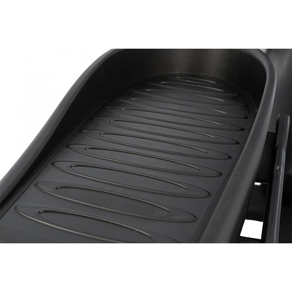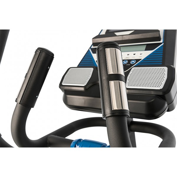 Тренажер с передней установкой привода работает с маховиком массой 34 кг (инерционный вес). Модель имеет 24 варианта сложности тренировки, регулировка выполняется электронно. Широкие педали и длина шага в 45,7 см гарантируют комфорт спортсмена. Есть датчики проверки пульса, при желании можно купить и подключить кардиопояс.