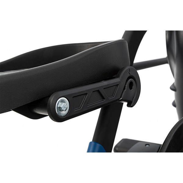 Тренажер легко складывается и надежно фиксируется специальным замком, что гарантирует невозможность его случайного раскрытия.