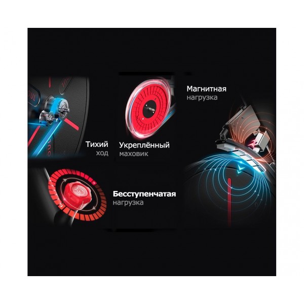 Современный велотренажер с ременным приводом и ручным изменением нагрузки (бесступенчатым). Модель работает очень тихо за счет особой конструкции, при которой маховик расположен внутри. Предусмотрена настройка руля и сидения.