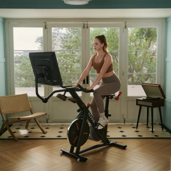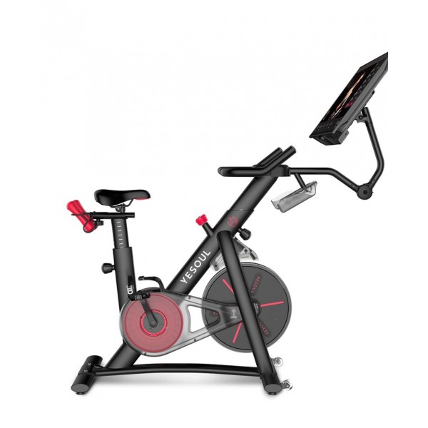 Велотренажер Smart Spinning bike G1MAX – современный спинбайк с магнитной нагрузкой и большим дисплеем, на который можно транслировать приложение с телефона или планшета. Модель рассчитана на рост 150-188 см и вес до 130 кг.