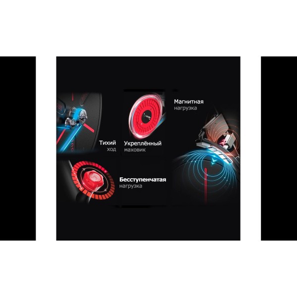 Конструкция спин-байка основана на ременном приводе и предусматривает ручную настройку сопротивления. Эксперты отмечают очень тихую работу механизма, звук не переходит границу в 60 дБ. Спортсмен сможет точно подобрать положение на тренажере за счет регулировки сидения и руля.
