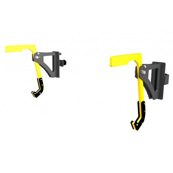 Монолифт ZSO A-ML для выполнения приседов со штангой. Такие зацепы имеют самоотодвигающуюся конструкцию, что позволяет спортсмену исключить шаг во время удерживания штанги на плечах.